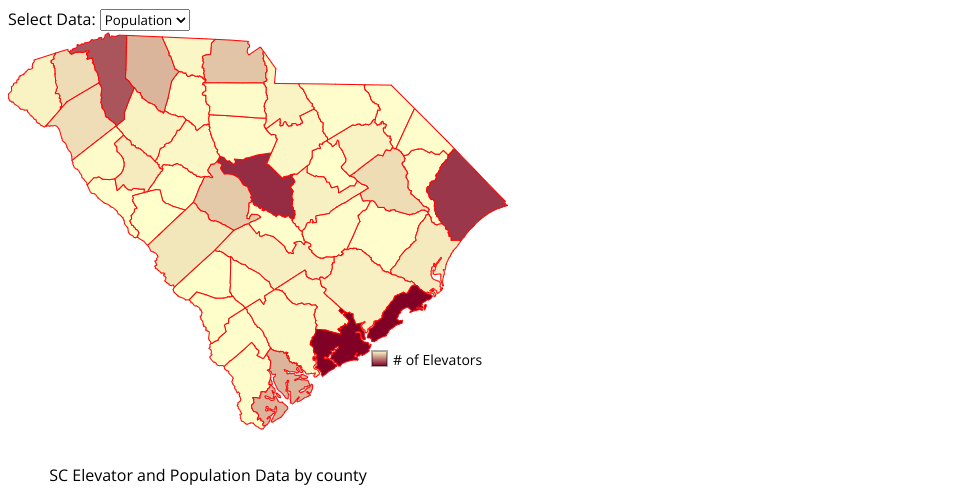 Task: utilize elevator data with population data in order to gain an understainding in development in SC Counties.