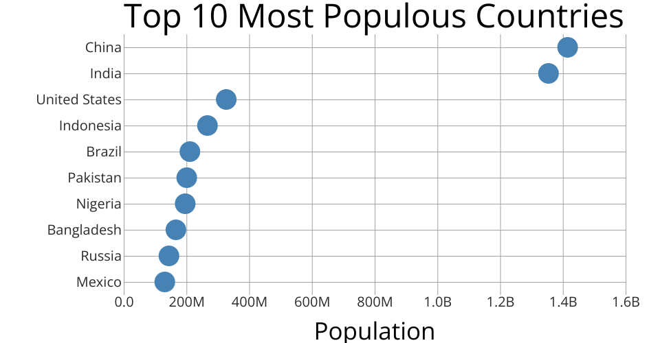 This barchart shows population of the top ten most populous countries. The Data is from the United Nations.