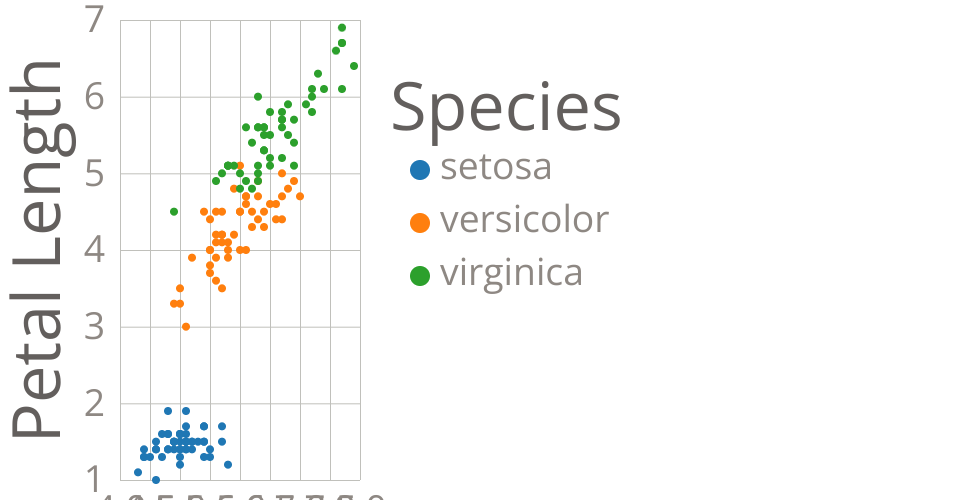 This visualization shows The Iris Dataset. It's designed to emphasize clustering by Petal Length and Sepal Length by Species.