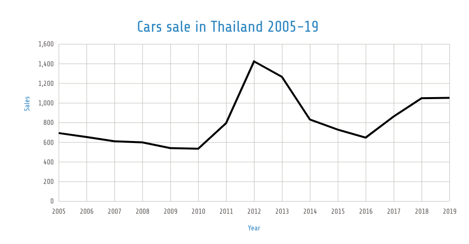 Cars sale in Thailand 2005-19 Line Chart 2 Final