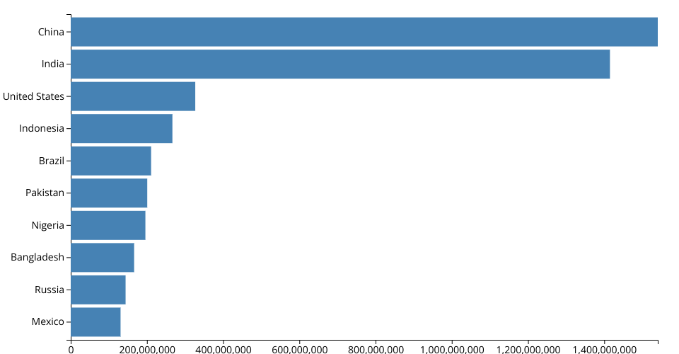This bar chart shows the population of the top 10 most populus countries. Data comes from ....