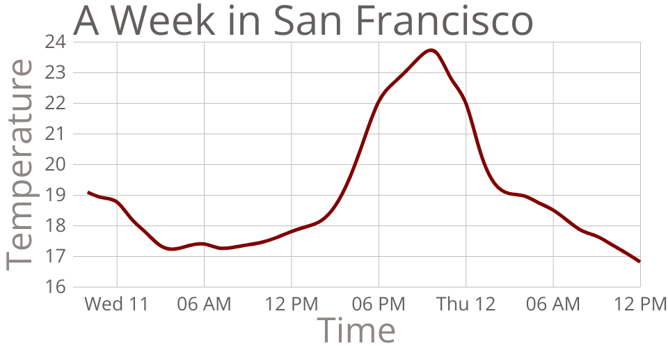 This line chart shows one week of temperature (in degrees Celcius) in San Francisco. The data comes from Data Canvas - Sense Your City.