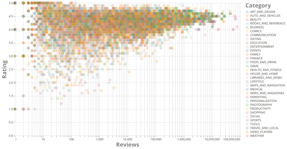 A visualization for Google Play Store Apps data using the vega-lite-api.
