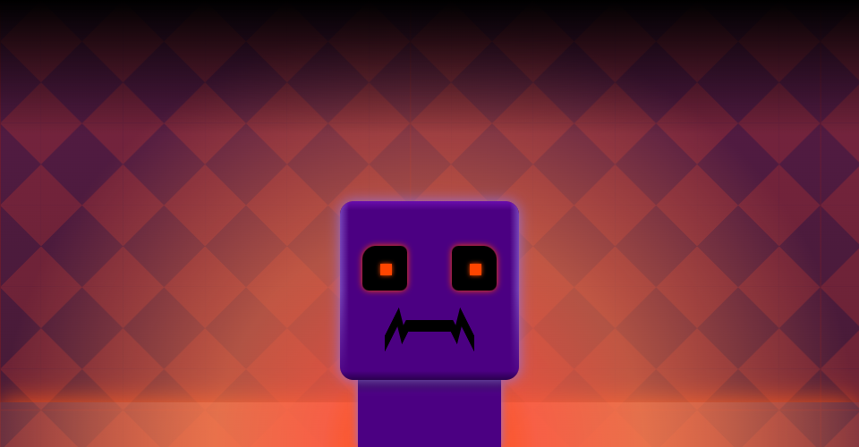 A CSS drawing of a Minecraft creeper head in a purple cave environment with lava. Created with pure HTML, CSS, and JavaScript.