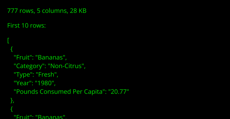 This data comes from the USDA Fruit and Tree Nut Yearbook - Table G36, via Data.world: TBT Week 19 - Fresh Fruit Consumption - 1980 to 2016