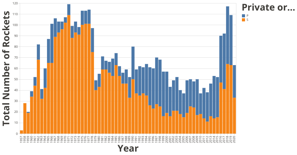 This chart meant to show the answer to "Total Number of Rockets Throughout The Years".