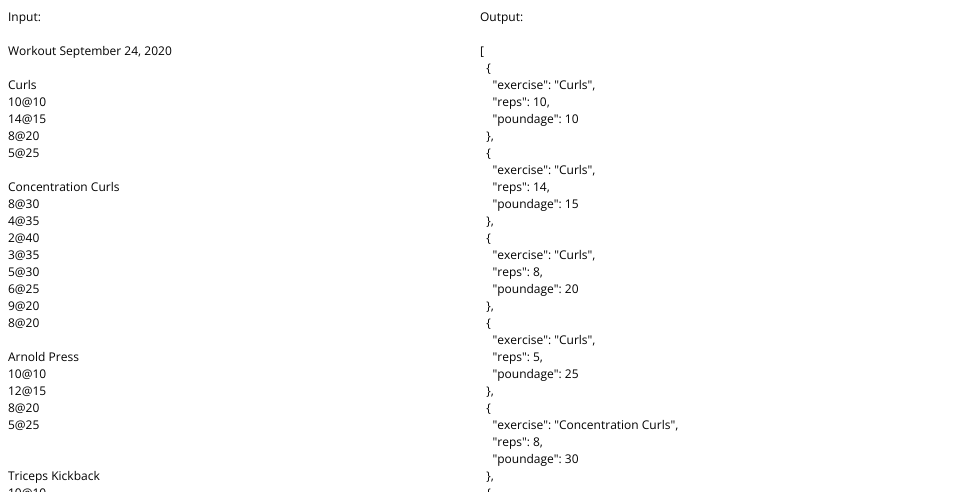 Actual functional log of workouts.