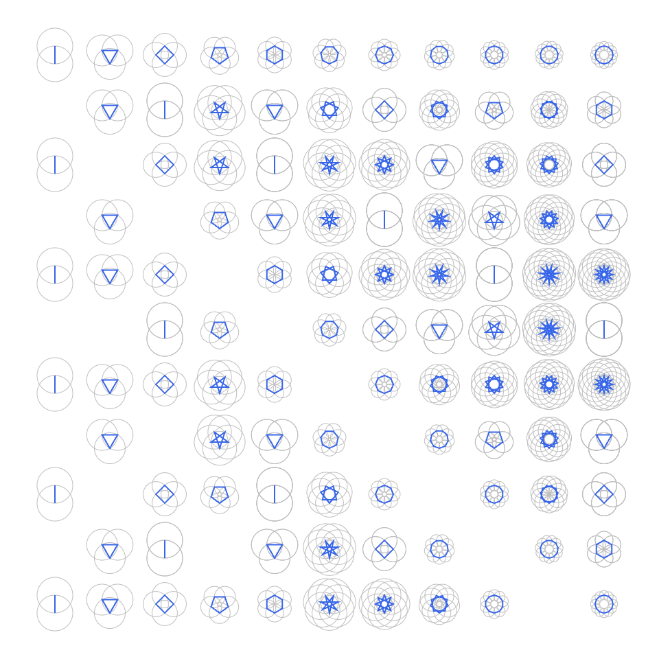 Experiments with geometric patterns and the Vedic Square. Developed in collaboration with Eric Rodenbeck.