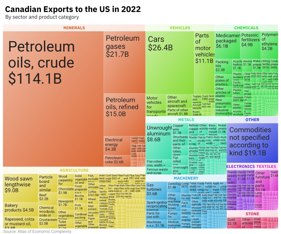 Atlas of Economic Complexity: What did Canada export to the United States of America in 2022?
