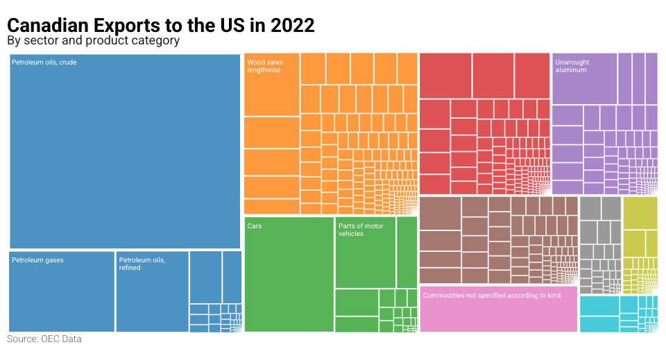 Atlas of Economic Complexity: What did Canada export to the United States of America in 2022?