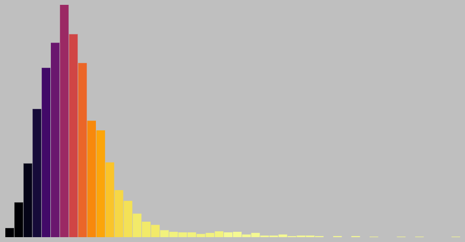 An example of a histogram with brushing. Shows unemployment rate by U.S. county, August 2016. Data: Bureau of Labor Statistics.