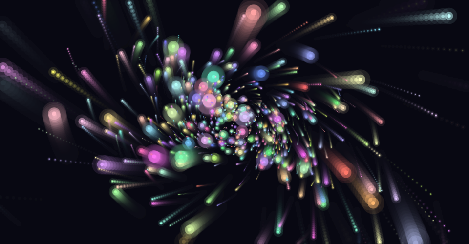 An interactive 3D starfield animation built with HTML5 Canvas and vanilla JavaScript. Features a rotating perspective view with colorful stars moving through 3D space in a dark cosmic environment.