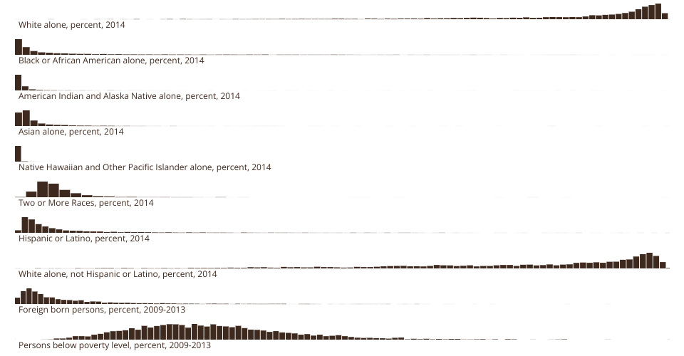 An example of multidimensional filtering (crossfiltering) using histograms and brushing. Shows the Iris dataset. Leverages d3-rosetta.
