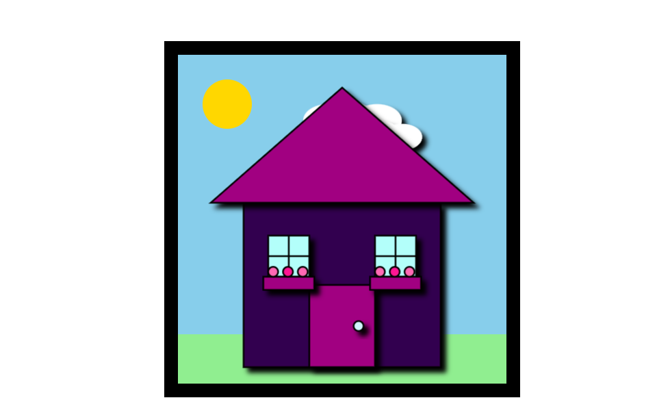 Pure SVG graphic with house and clouds! Thanks to Claude & Aider.