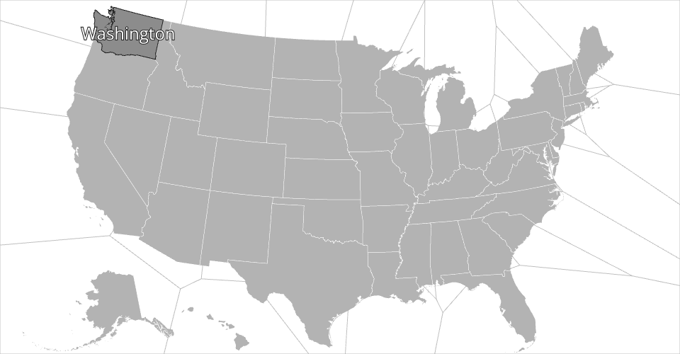 Hover interaction on US States. Uses a Voronoi Diagram in the background to facilitate hovering over small areas. Leverages utilities from d3-rosetta.