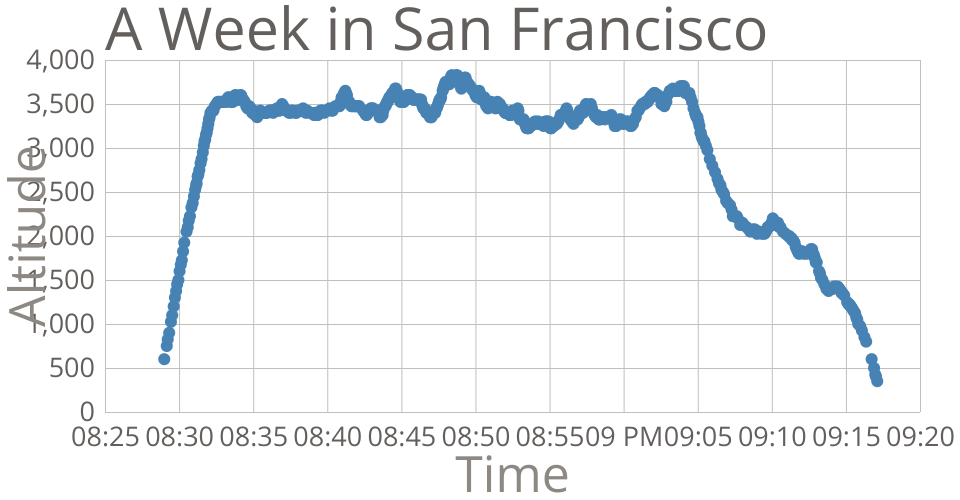 This scatter plot shows one week of temperature (in degrees Celcius) in San Francisco. The data comes from Data Canvas - Sense Your City.