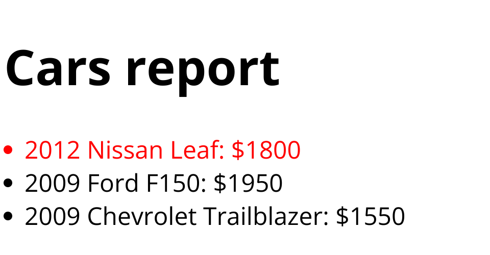 HTML Cars Report