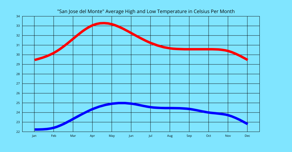 Average High and Low Temperature in San Jose del Monte By Month Line Chart