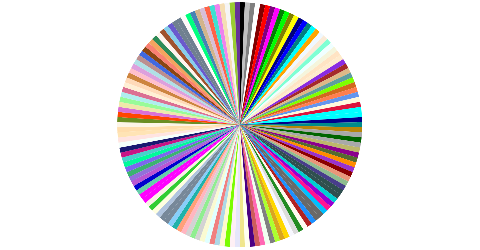 A program that loads in some data about CSS named colors using D3 utilities, and uses React to render the data as a radial burst!