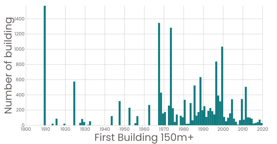 The full data I propose to visualize for my project is about the number of completed highest structures in the world cities. Building greater than 100 meters was counted on the world map.