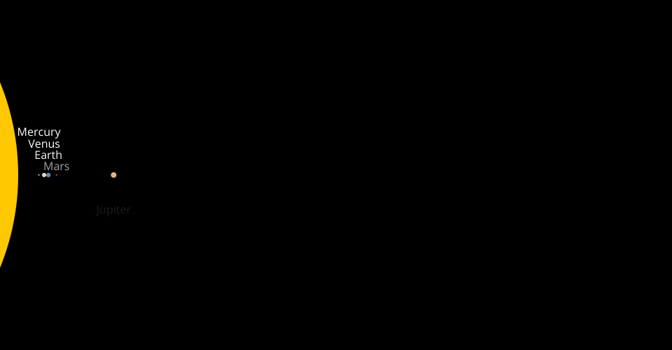 A visualization of the solar system. Relative sizes to scale, distances not to scale.