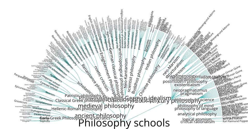 Radial Tree Visualization of Countries Hierarchy. Has Panning and Zooming interaction.