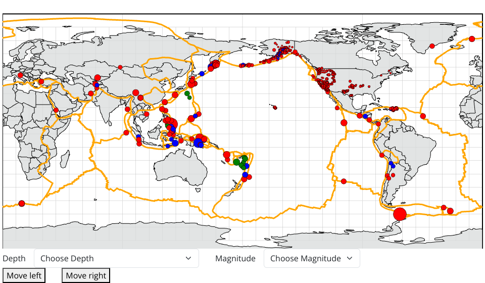 • added dropdown menus. User can select to view earthquakes by choosing depth and magnitude.
