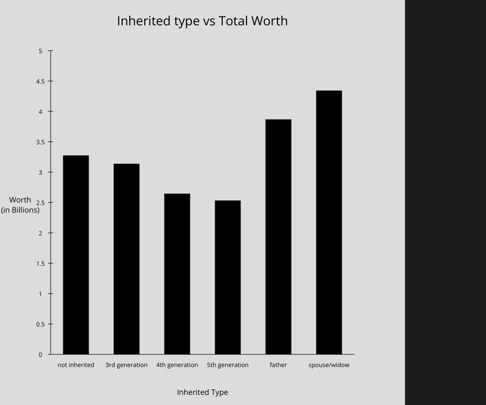 The original dataset is from "https://corgis-edu.github.io/corgis/csv/billionaires/" The dataset has been modified and filtered to have only two columns (inherited_type, Average worth in billions) The total worth has been grouped with different inherited types and the average wealth.