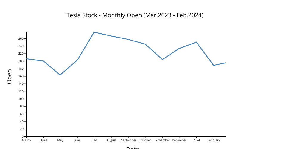 Tesla Stock dataset from Yahoo Finance from Mar 2023 - February 2024