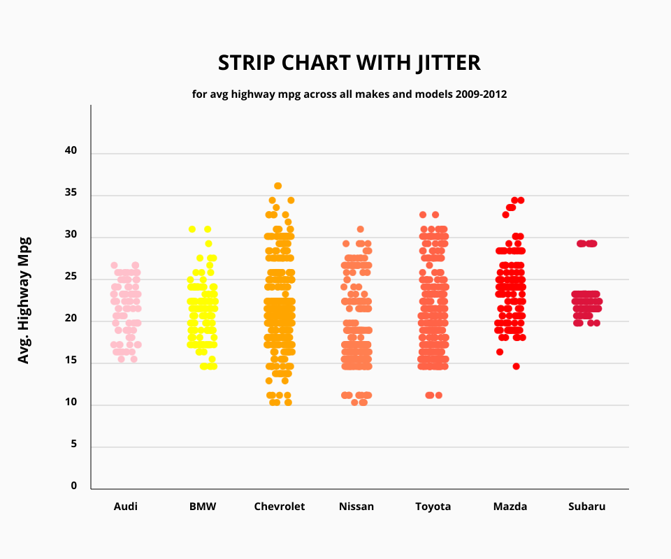 The original dataset is from 'https://corgis-edu.github.io/corgis/csv/cars/', and take only 'Identification.Make' and 'Fuel Information.Highway mpg'. Clean the dataset to have only 7 cars made that are needed.