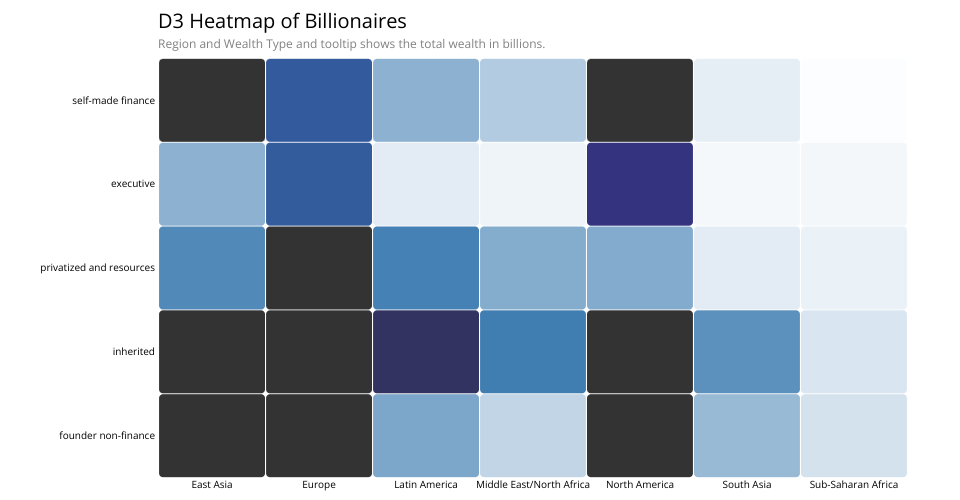Billionaires Dataset From the CORGIS Dataset Project 'https://corgis-edu.github.io/corgis/csv/billionaires/' Edited to only 3 columns 'region', 'wealth_type', 'wealth_worth', and all being grouped by region and wealth type.