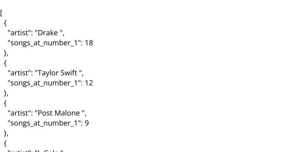 Uses the Spotify Top 10,000 Songs data set and calculates the number of songs each artist has eached the #1 spot with.