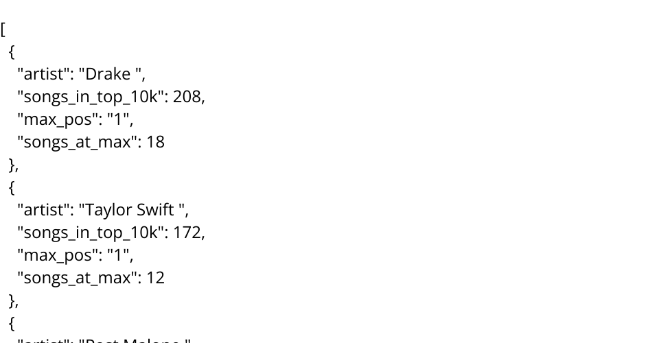 Uses the Spotify Top 10,000 Songs data set and calculates the number of songs each artist has eached the #1 spot with.