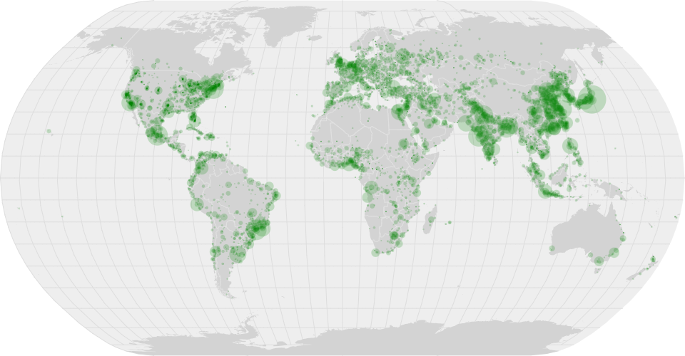 A scatter world map built with D3 and React.