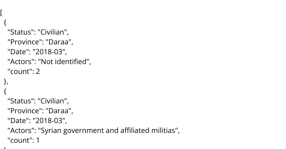 Data from: https://github.com/curran/data/blob/gh-pages/SyriaViolationsDocumentationCenter/dataAggregated.csv