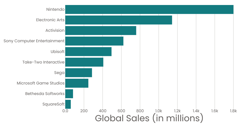 A program that shows the top 10 game publisher which have the highest historical video game sales.