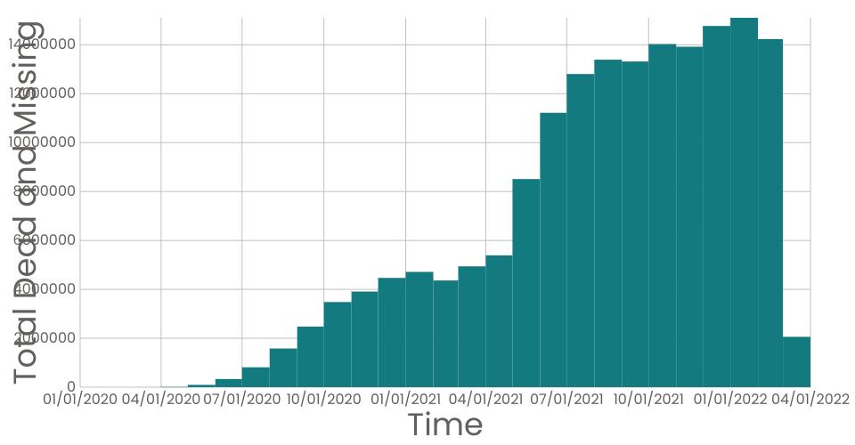 A date histogram showing the sum total dead and missing migrants for each month.