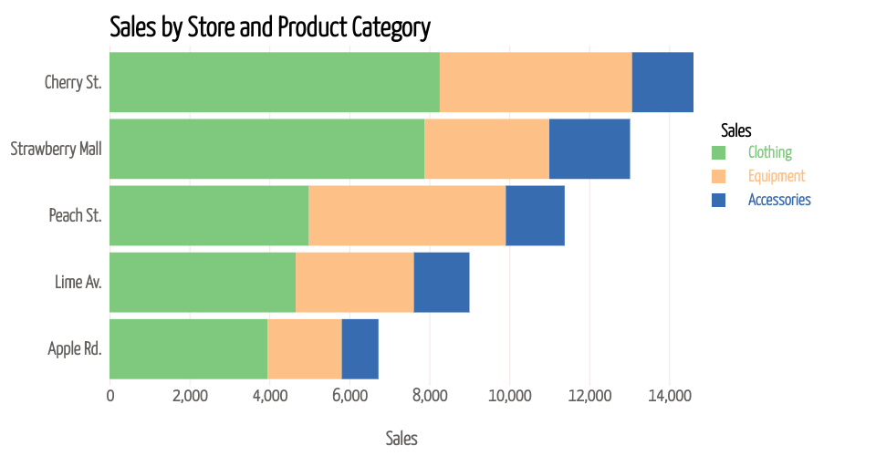 This is the stacked horizontal bar chart for the Sales by Store and Product Category