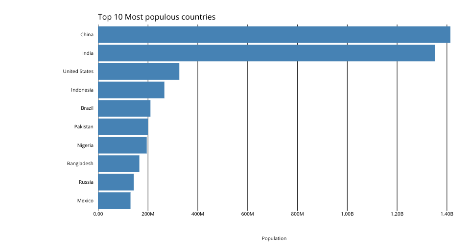 This bar chart shows population of the top 10 most populous contries. World popilation Prospects 201