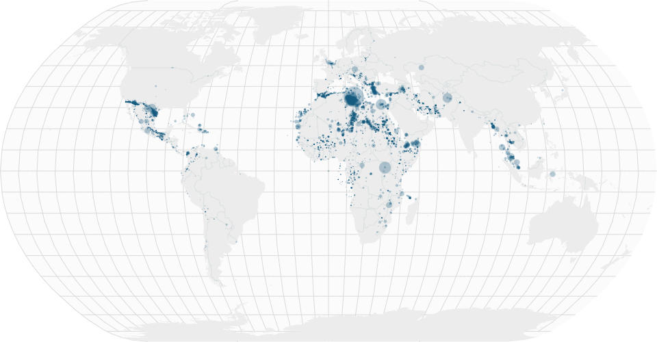 Sized Points On A Map with Simple Maps Database using [a clean csv of world cities data] (https://gist.github.com/curran/13d30e855d48cdd6f22acdf0afe27286)