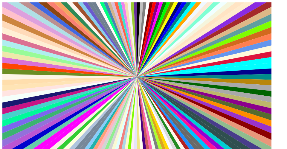 A program that load in some data about CSS named colors using D3 utilities, and uses React to render the data as a radial burst!