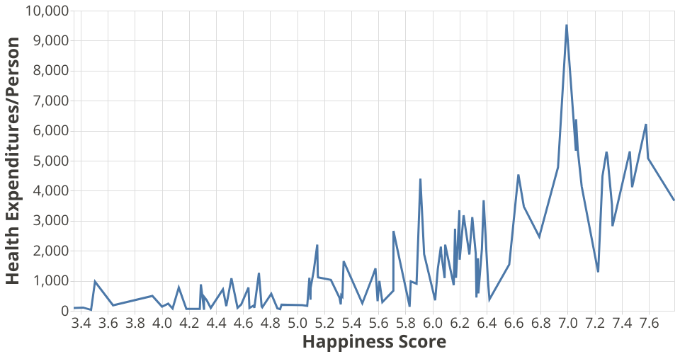 World Happiness and Health Expenditures Correlation