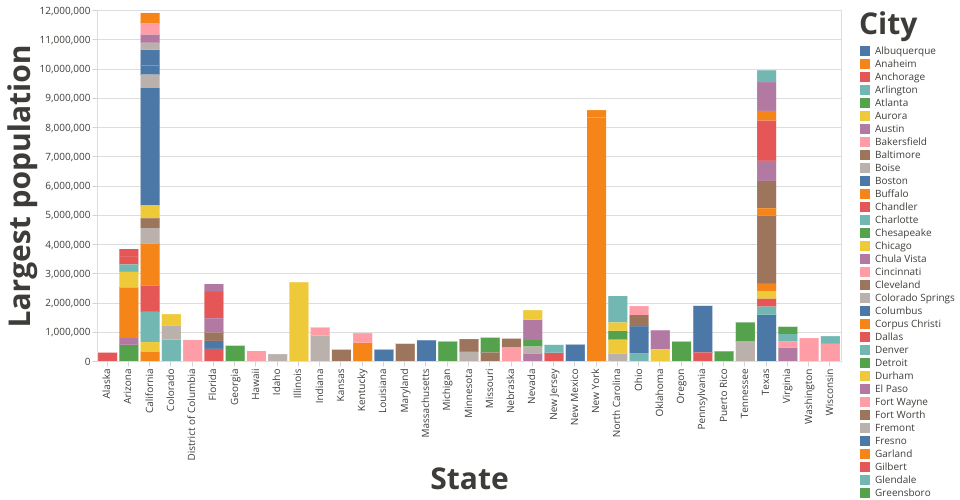 • Which state has most largest cities