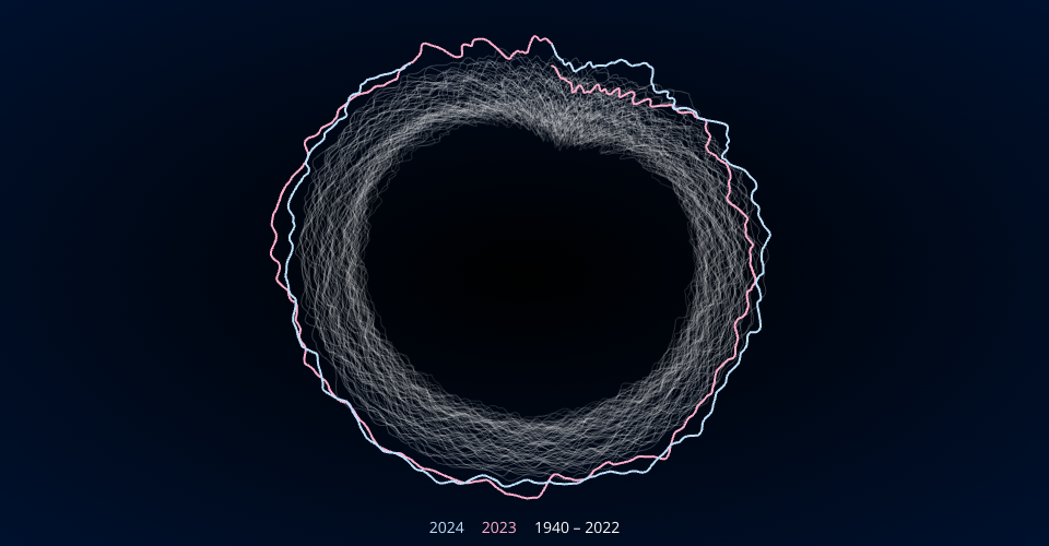 Daily surface temperatures since 1940. One circle = one year.