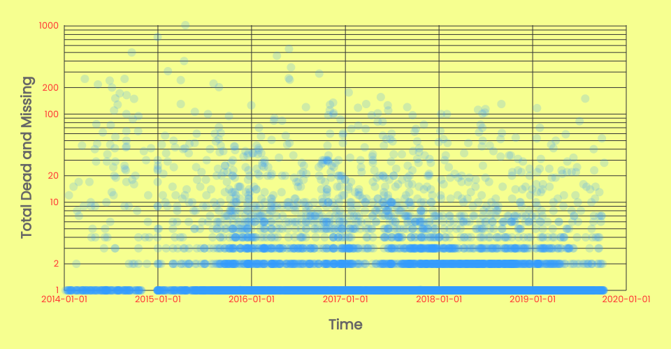 A scatter plot of the Missing Migrants Dataset.