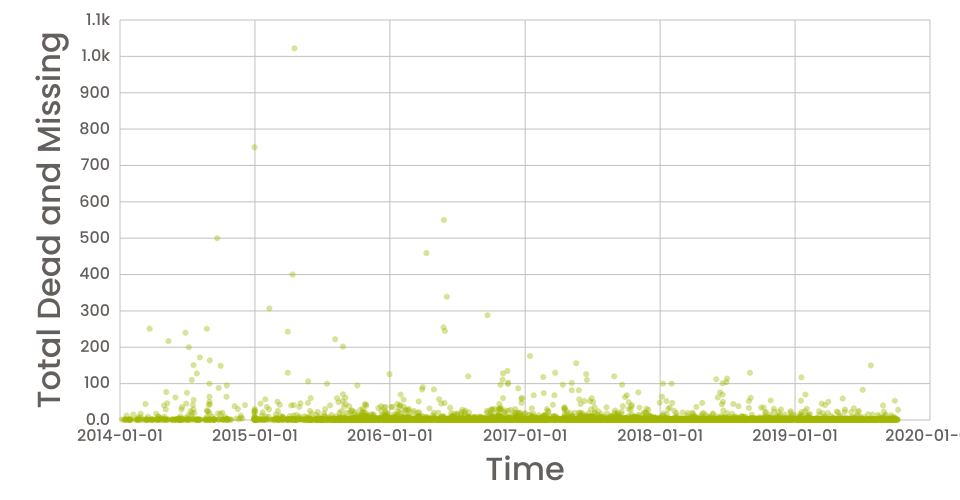 A scatter plot of the Missing Migrants Dataset.