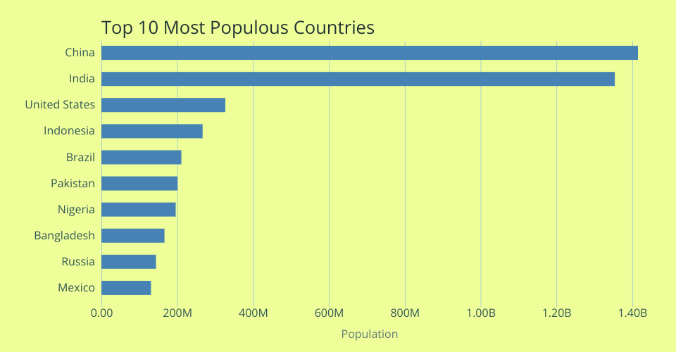 -- This bar chart shows population of the top 10 most populous countries. The data comes from the year 2018 estimate in United Nations: World Population Prospects 2017. It also demonstrates customization of D3 axes.