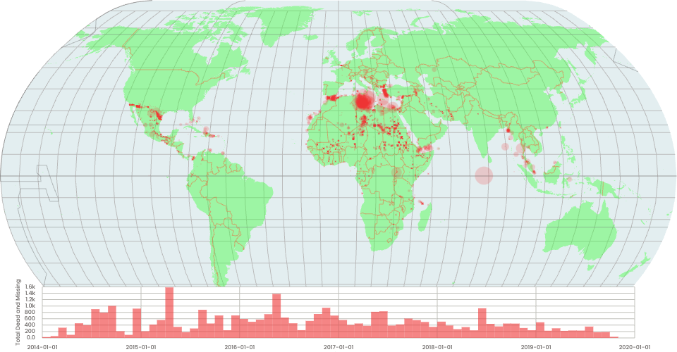 A world map of the Missing Migrants Dataset.