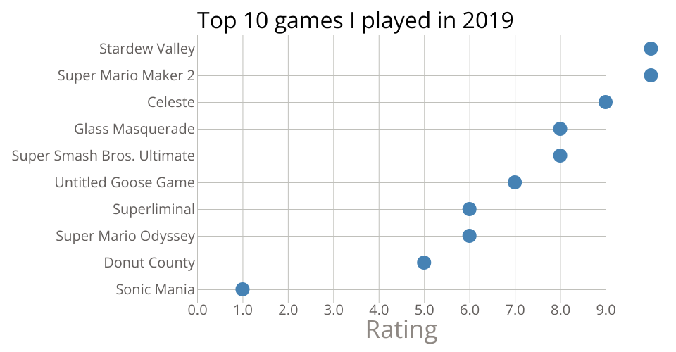 This bar chart shows ratings of games I played in 2019. These aren't entirely accurate, but it's for a teaching thing so yeah.