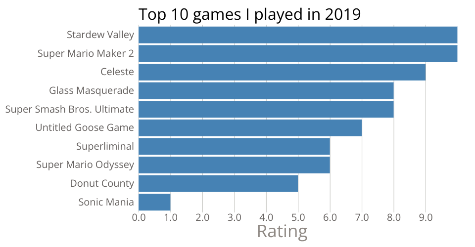 This bar chart shows ratings of games I played in 2019. These aren't entirely accurate, but it's for a teaching thing so yeah.